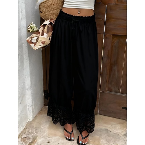 Per donna Culotte Gamba Larga Chinos Elegante Vintage Moda Lunghezza intera Vita Alta Tinta unica Patchwork Fascia Elastica Comodo Traspirante Micro-elastico Quotidiano Casa All'aperto Nero Bianco