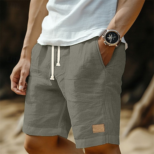 Per uomo Shorts Shorts di Lino Pantaloncini Estivi Shorts da Spiaggia Coulisse Elastico in vita Semplice Comodità Traspirante Lunghezza al ginocchio All'aperto Casuale Quotidiano Vacanza Moda Blu Nero