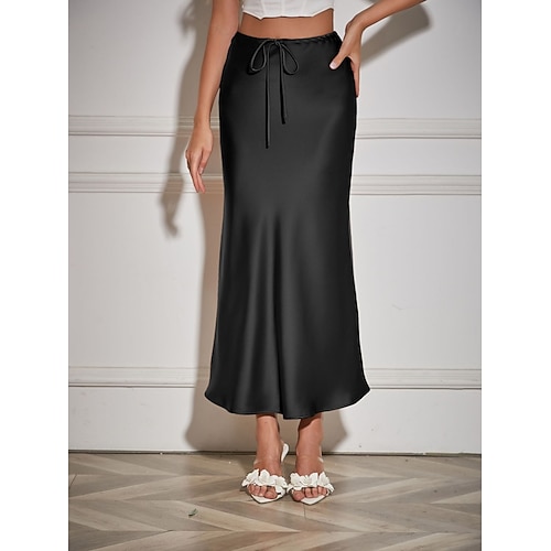 Per donna Gonne in raso Elegante Moda Maxi Vita Alta Gonne Semplice Coulisse Micro-elastico Feste Data Nero Blu marino Marrone chiaro Marrone Estate Raso Poliestere