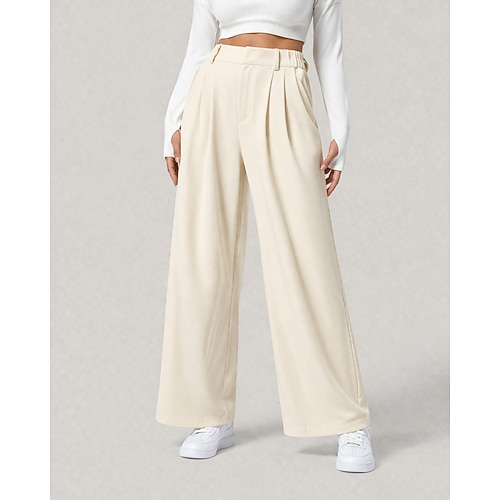 Per donna Nido d'ape Gamba larga Chinos Vacanza Lunghezza intera Vita Alta Comodità Micro-elastico Quotidiano Blu Verde translucido Aalbicocca Nero Primavera Vestibilità comoda
