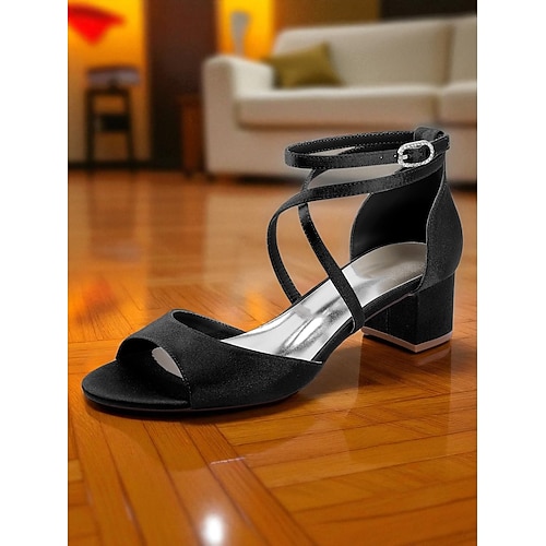 sandali da donna con tacco a blocco in raso e cinturino alla caviglia - eleganti scarpe eleganti con punta aperta per cocktail party e abiti da sera