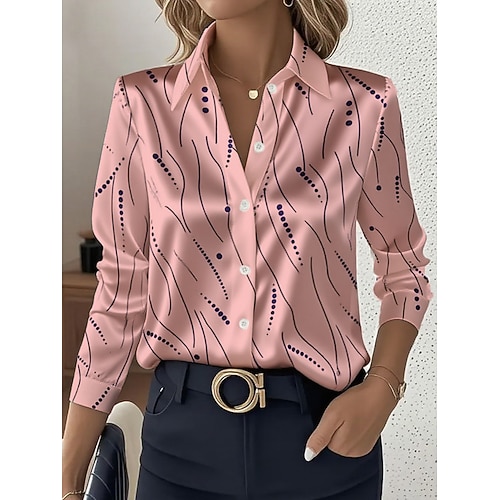 Camicia da donna Elegante Top Formale Camicia da lavoro Grafica Geometrica Elegante Stile Casual Manica Lunga Collo Feste Sera Abbigliamento Quotidiano Glitter Bianco Rosa Blu Arancione Verde