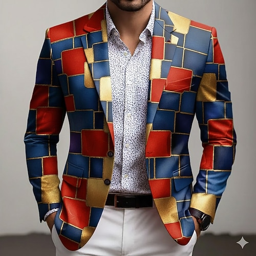 Per uomo Blocco di colori Geometrico Giacca blazer Cappotto Confortevole Traspirante Artistico Casual Casuale Quotidiano Abbigliamento da sera Stampa 3D Bottoni Multi-tasche Tutte le stagioni