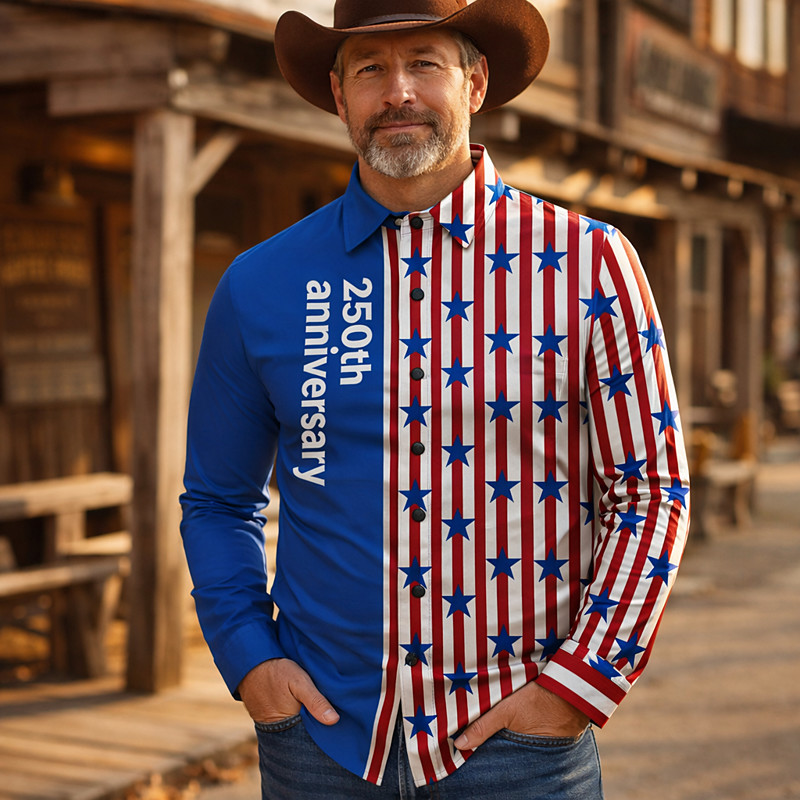 American 250 Retro Vintage 1970s Shirt Aloha Shirt Long Sleeves Hippie Geometic Ethnic Fancy Dress Men's Masquerade 4th of July Party Independence Day Semiquincentennial Adults' Shirt