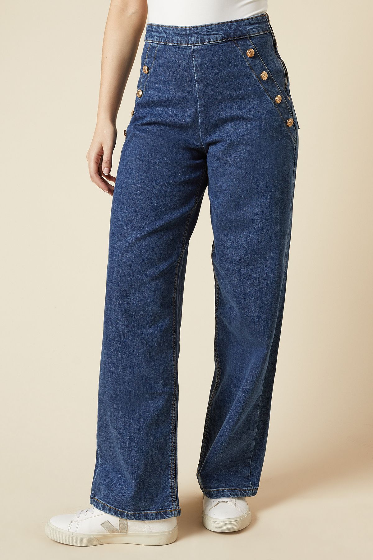 Dorothy Perkins Womens Military Button Detail Wide Leg Jean - Blue Material_cotton - Size 14 UK | Dorothy Perkins Sale | Discount Designer Brands