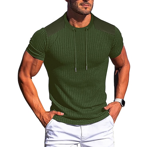 Per uomo Maglietta Camicia a Maniche Corte Manica Corta Girocollo Estate Primavera Tinta unica Streetwear Elegante Sportivo Patchwork Casuale Quotidiano All'aperto Blu Rosso violaceo Grigio scuro