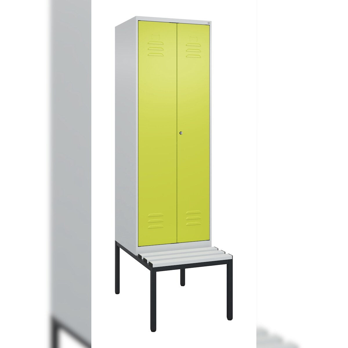 C+P Doppel-Spind Classic PLUS Kunststoff untergebaute Bank, 2 Abteile, HxBxT 212x60x82cm, Zylinderschloss, Hellgrau/Clowngrün von PROREGAL