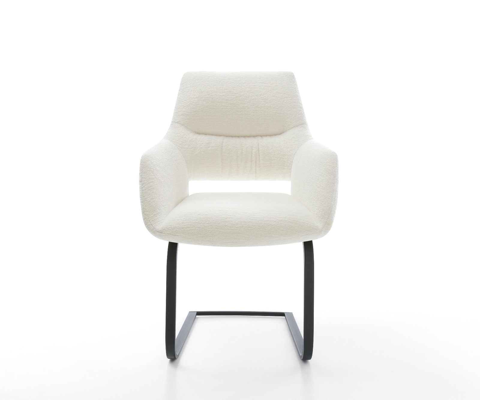 Cantilever Yago-Flex avec accoudoirs bouclé doux beige pied cantilever plat noir resorts ensachés