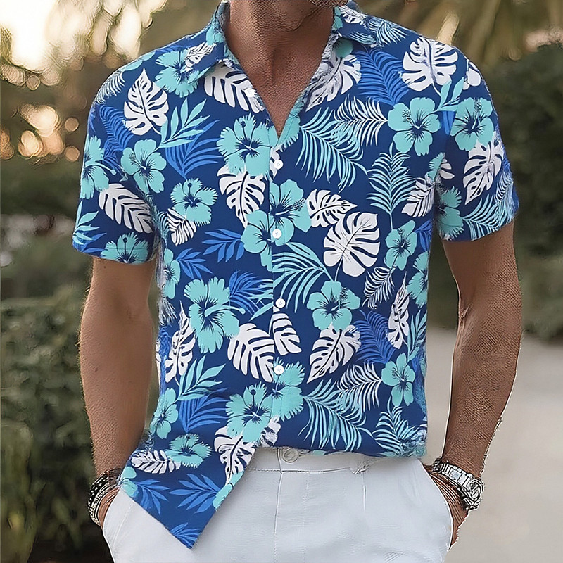Men's Floral Print Tropical Flowers Palm Leaf Summer Hawaiian Shirt Button Up Shirt Aloha Shirt Short Sleeve Hawaiian Vacation Beach Wear Summer Spring Turndown 3D Print Collared Shirts Blue Red Green