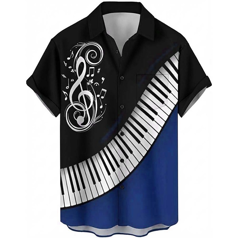 Men's Piano Musical Notes Color-blocking Shirt Summer Shirt Button Up Shirt Short Sleeve Fashion Casual Daily Music Festival Summer Spring Turndown 3D Print Collared Shirts Front One Pocket Black Red