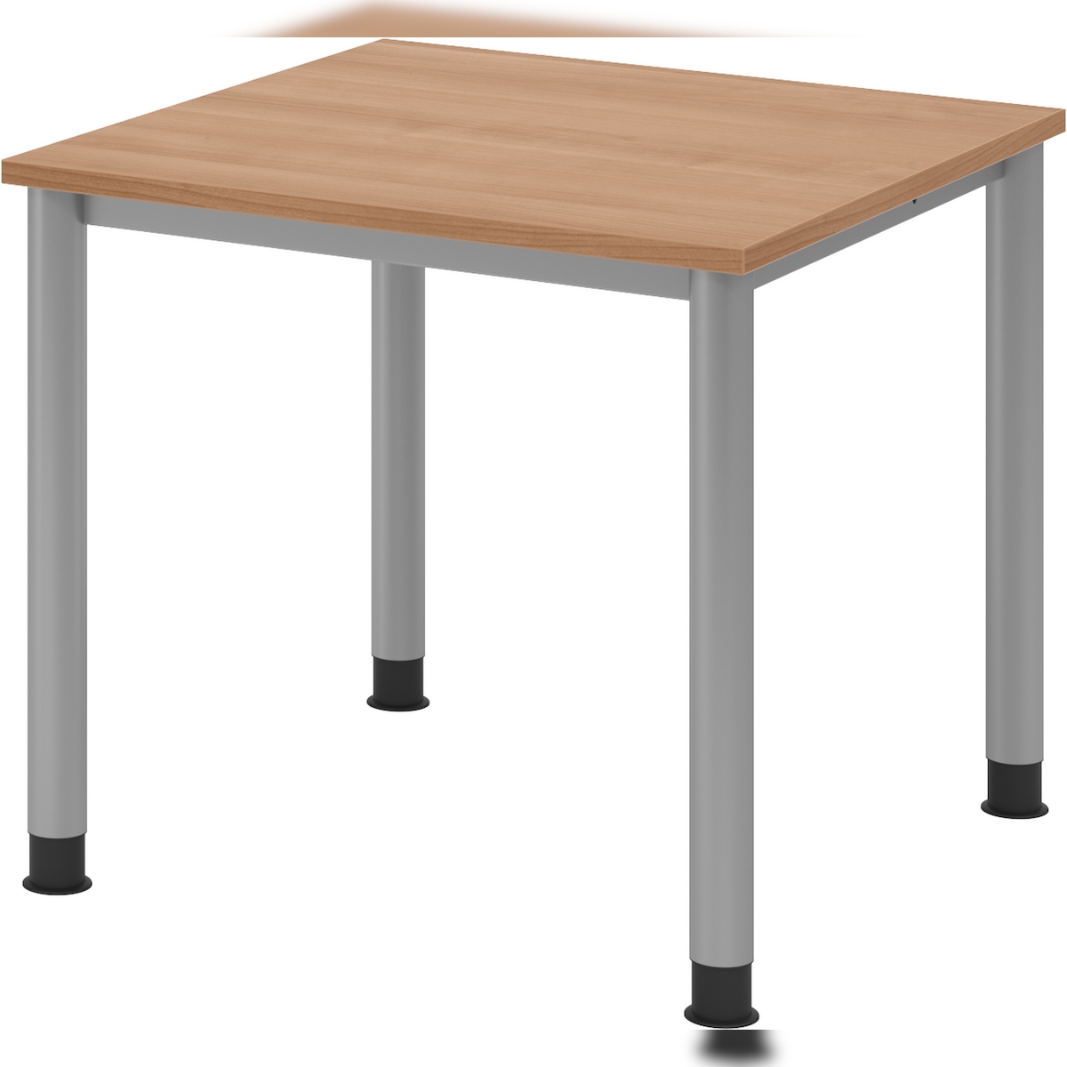 bümö höhenverstellbarer Schreibtisch H-Serie 80x80 cm in Nussbaum, Gestell in Silber - PC Tisch klein für's Büro manuell höhenverstellbar,