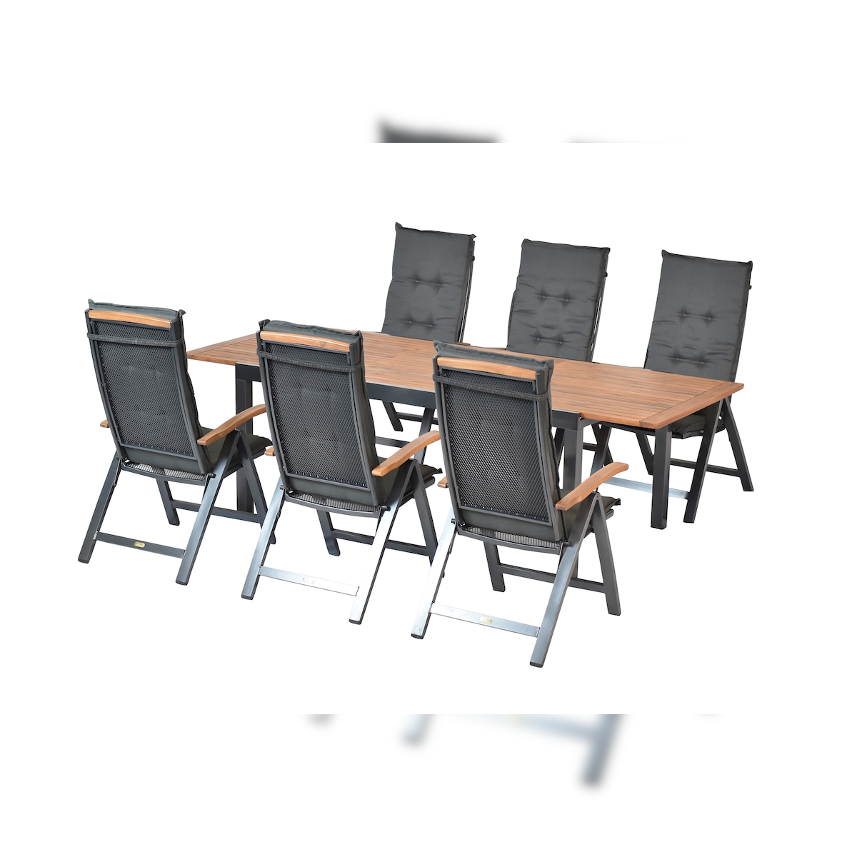 Merxx Tilos Set 13tlg., 6 Klappsessel, 6 Auflegepolster, 1 Tisch 180(250) x 100 cm, Aluminium