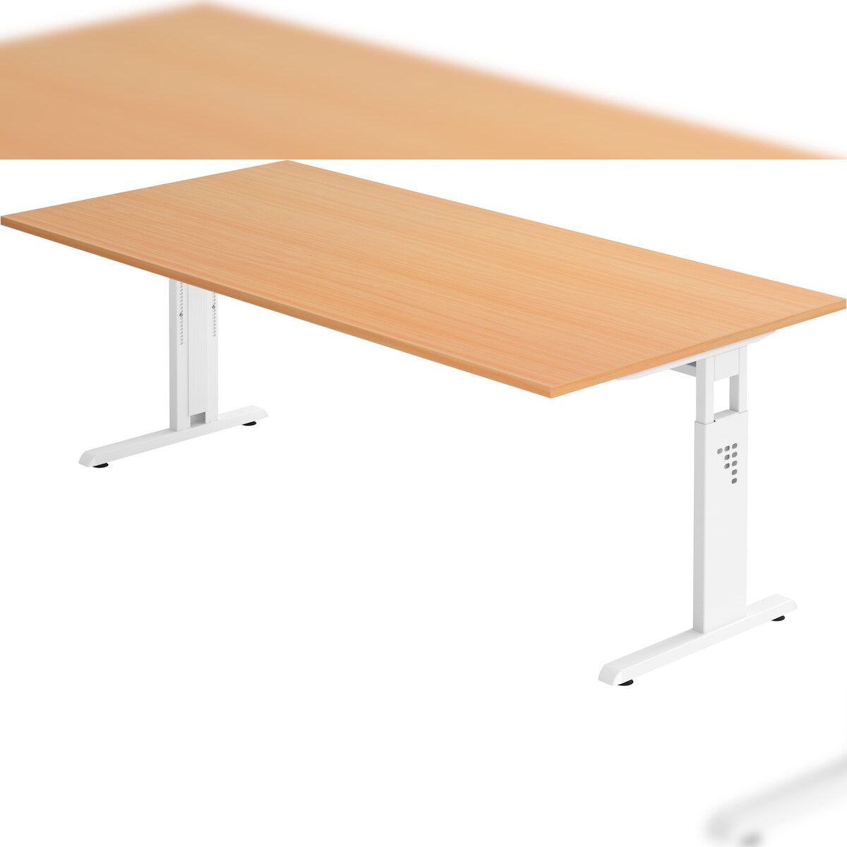 bümö höhenverstellbarer Schreibtisch O-Serie 200x100 cm in Buche, Gestell in weiß - großer PC Tisch für's Büro manuell höhenverstellbar,