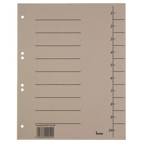 Bene 1 bis 10 Trennblätter DIN A4 Weiß 10-teilig Pappkarton 6 Löcher 97300WS 100 Stück