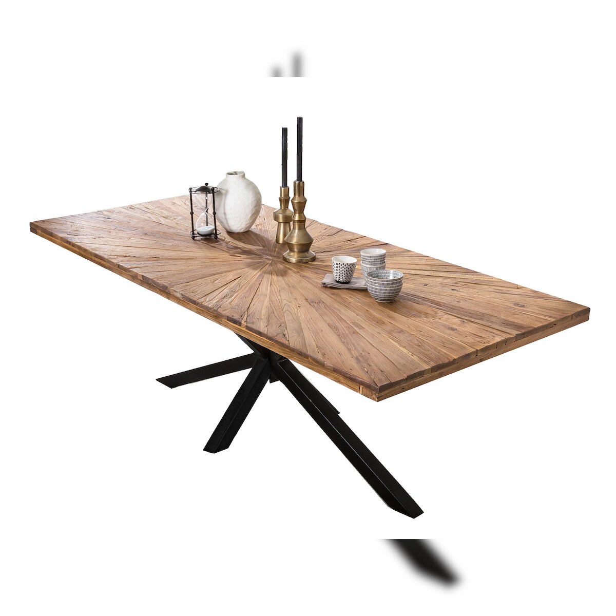 SIT Möbel Esstisch | 200 x 100 cm | Platte 50 mm Teak natur | Gestell Metall antikschwarz | B 200 x T 100 x H 79 cm | 15262-11 | Serie TABLES & CO