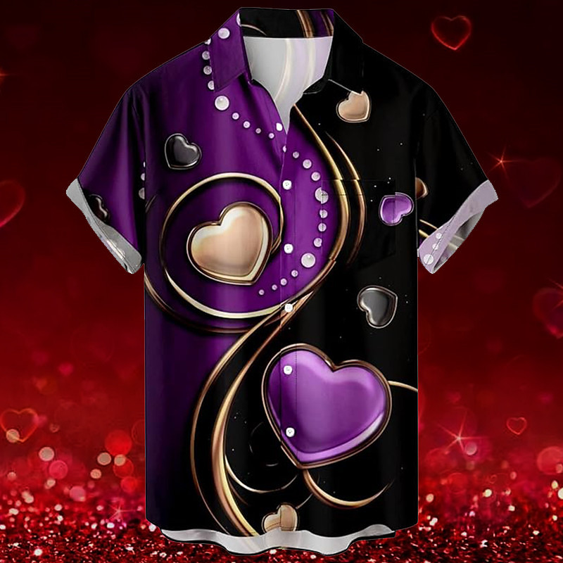 Valentine's Day Heart Romantic Men's Resort Hawaiian 3D Printed Shirt Button Up Short Sleeve Summer Beach Vacation Daily Wear S TO 3XL