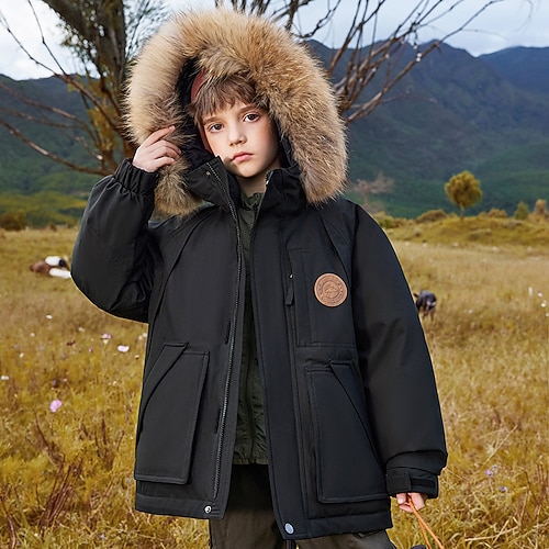 Bambini Unisex Giacca in piuma Giacca da esterno Giacca Imbottita Capispalla Tinta unica Manica Lunga Impermeabile Tenere al caldo Antivento Cappotto All'aperto Quotidiano Essenziale Nero Bianco