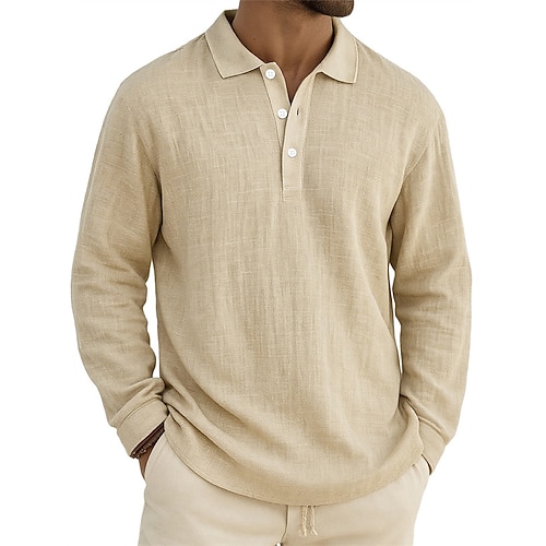 Per uomo Maglia da golf Polo da Golf Lavoro Casuale Bavero Manica Lunga Essenziale Moderno Blocco di colori Bottoni Primavera Autunno Vestibilità regolare Verde translucido Nero Bianco Marrone Cachi