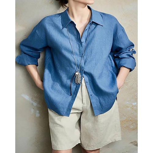Per donna Camicie di cotone e lino Blusa Semplice Elegante Manica Lunga Colletto a Camicia Top Regolari Quotidiano Lavoro Ferie Bottoni Blu Bianco Rosa Primavera Autunno