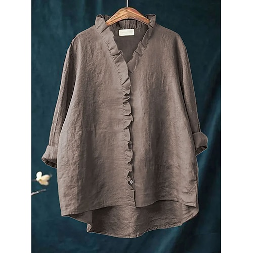 Per donna Camicia Camicia di lino Camicie di cotone e lino Semplice Quotidiano Elegante Essenziale Manica 3/4 Scollo a V Top Regolari Lavoro Quotidiano Ferie Nero Bianco Blu Primavera Autunno