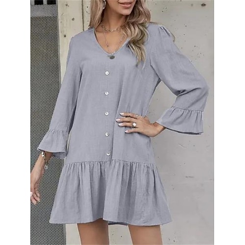 Per donna Mini Abito Abiti in cotone e lino Abito a Tubino Vestito Casual Moda Essenziale Moderno Manica del polsino svasato Quotidiano All'aperto Vacanza Vestibilità regolare Vestibilità comoda