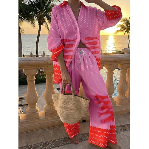 Per donna Set di Pantaloni Bolero Top Manica Lunga Colletto a Camicia Geometrico Moda Streetwear Quotidiano All'aperto Spiaggia Blu Rosa Rosa scuro Estate Vestibilità comoda