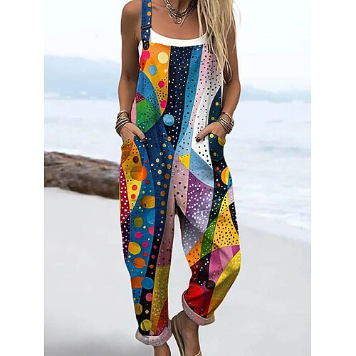 Per donna Salopette Attivo Floreale Senza Maniche Senza maniche Dritto Collo quadrato Tasca con tasca Vacanza Quotidiano Vestibilità comoda Giallo Rosa Blu Estate