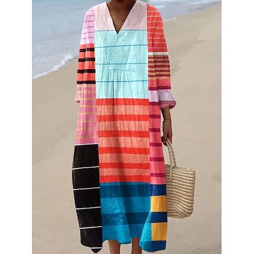 Per donna Abito maxi Vestito Estivo Abito a Tubino Vacanza Casual Spiaggia Uscire Vestibilità comoda Grafico Geometrico Astratto Manica Lunga Scollo a V Rosso violaceo Rosso arancione Fucsia Estate
