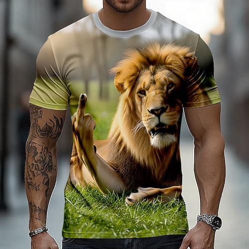 Maglietta da uomo divertente con dito medio e leone, stampa animalier 3D, t-shirt a maniche corte, girocollo, casual, abbigliamento estivo streetwear, abbigliamento s m l xl xxl xxxl