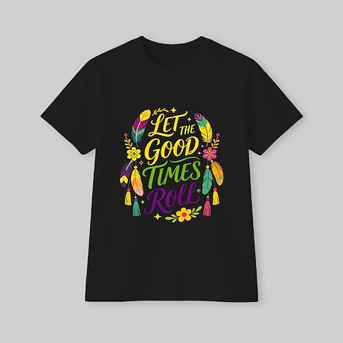 T Shirt da Donna Carnival Graphic Vintage Moda Elegante Maniche Corte Maniche Lunghe Collo Tondo Tops Regolari Daily Stampa Nera Viola Estate Primavera