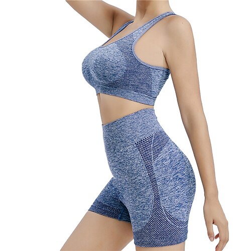 Per donna Yoga corto 2 pezzi di abbigliamento sportivo Reggiseno sportivo Imbottito Senza Maniche Top Athleisure Tinta unita Traspirante Palestra Allenamento Corsa abbigliamento sportivo