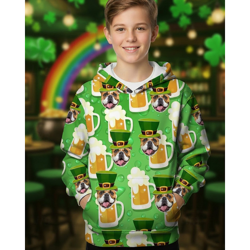 St. Paddy's Day Boys' 3D Graphic Dog St. Patrick's Day Hoodie Pullover Long Sleeve 3D Print Spring Fall Sports Fashion Streetwear Kids 4-12 Years Hooded Casual Daily Outdoor Regular Fit
