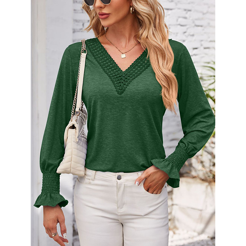 Women's Tunic Elegant Solid Color Lace Butterfly Sleeve Long Sleeve Regular Tops V Neck Daily Pink Blue Green Khaki Spring Fall
