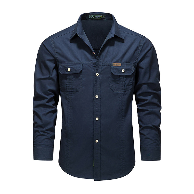 Men's Shirt Workwear Shirts Casual Shirt Work Shirt Button Up Shirt Cargo Shirt Black khaki Army Green Beige Gray Long Sleeve Plain Lapel Vacation Hawaiian Front Pocket Clothing Apparel 100% Cotton