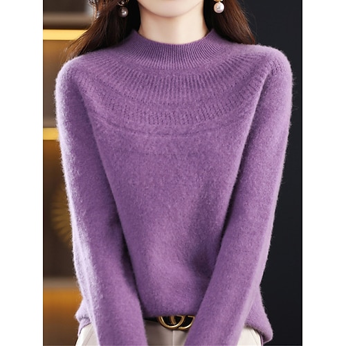 Per donna Maglione Streetwear Casual Morbido Tinta unica A Coste Girocollo Oversize Manica Lunga Top Regolari Maglia All'aperto Quotidiano Ferie Magenta azzurro cielo Autunno Inverno
