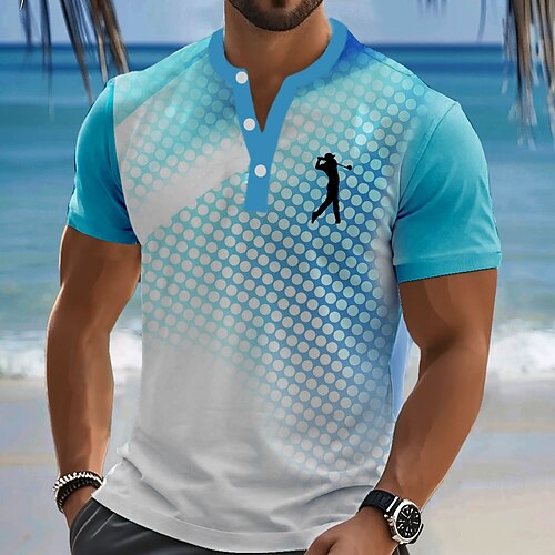 Per uomo Geometrico Maglietta Maglia Henley Manica Corta Designer Retrò Vintage Casual Sport Outdoor Streetwear Casuale Estate Primavera azzurro cielo Verde Blu marino Henley Maglietta Henley