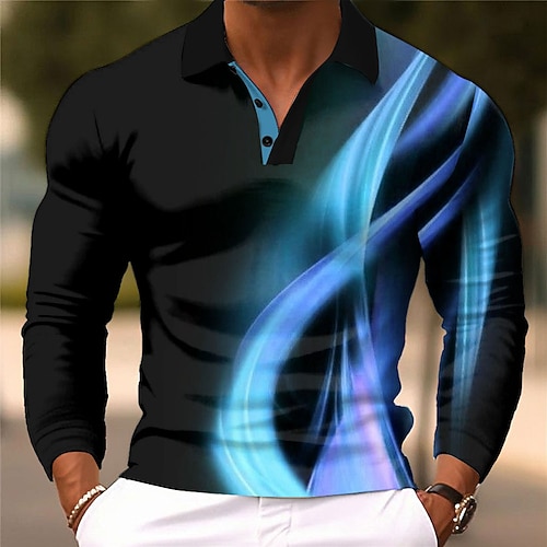 Per uomo Geometrico Linea Polo Manica Lunga Magliette polo Camicie con Colletto Business Casual Affari Athleisure Abbigliamento quotidiano Stampa 3D Bottoni Primavera Autunno Inverno azzurro cielo