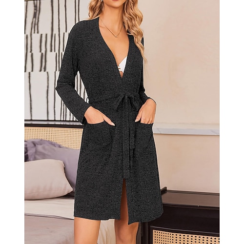 Per donna Pigiama Abbigliamento da Casa Camicia da Notte Casual Colore Puro Coulisse Tasca Vestiti Casa Quotidiano Manica Lunga Scollo a V azzurro cielo Nero Grigio Autunno Inverno Vestibilità su