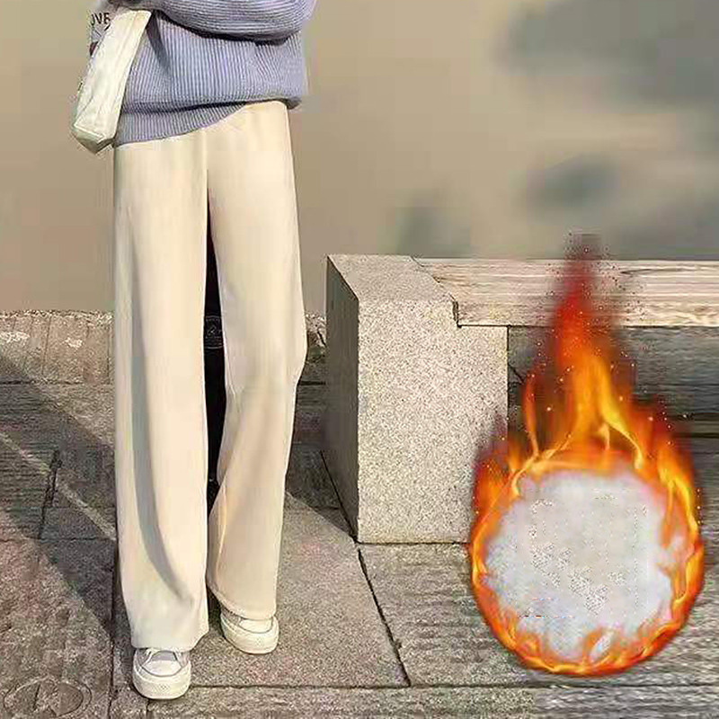 Women's Sports Fleece Pants Staright Leg Pants Thick Thermal Warm High Waist Gym Athletic Pilates Bottoms Solid Color Black Beige Winter Sports Activewear Loose Fit