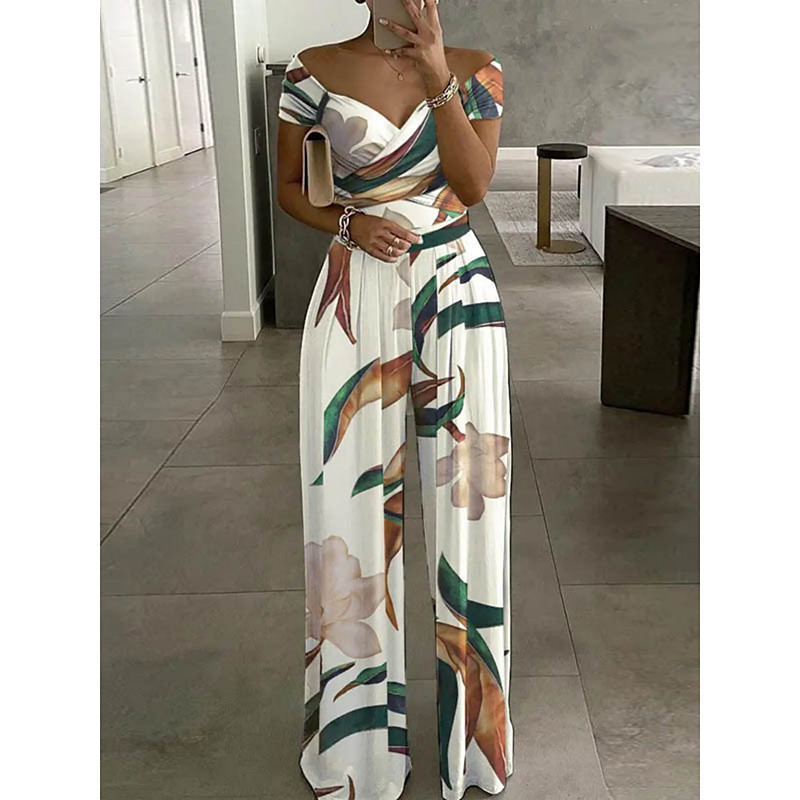 Women's Normal Jumpsuit Elegant Floral Short Sleeve Wide Leg Off Shoulder High Waist Vacation Daily Regular Fit Black White Red Summer