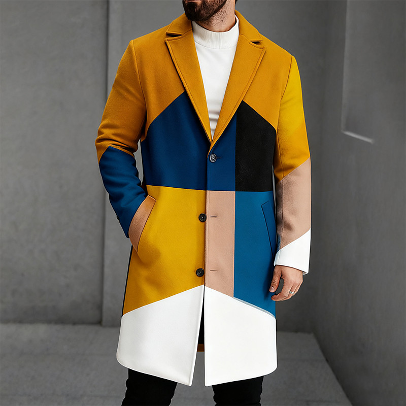 Men's Geometric Color Block Lightweight Jacket Overcoat Warm Casual Business Daily 3D Print Buttons Front Pocket Spring Fall Winter Notch Long Sleeve Blue 1 Red Blue
