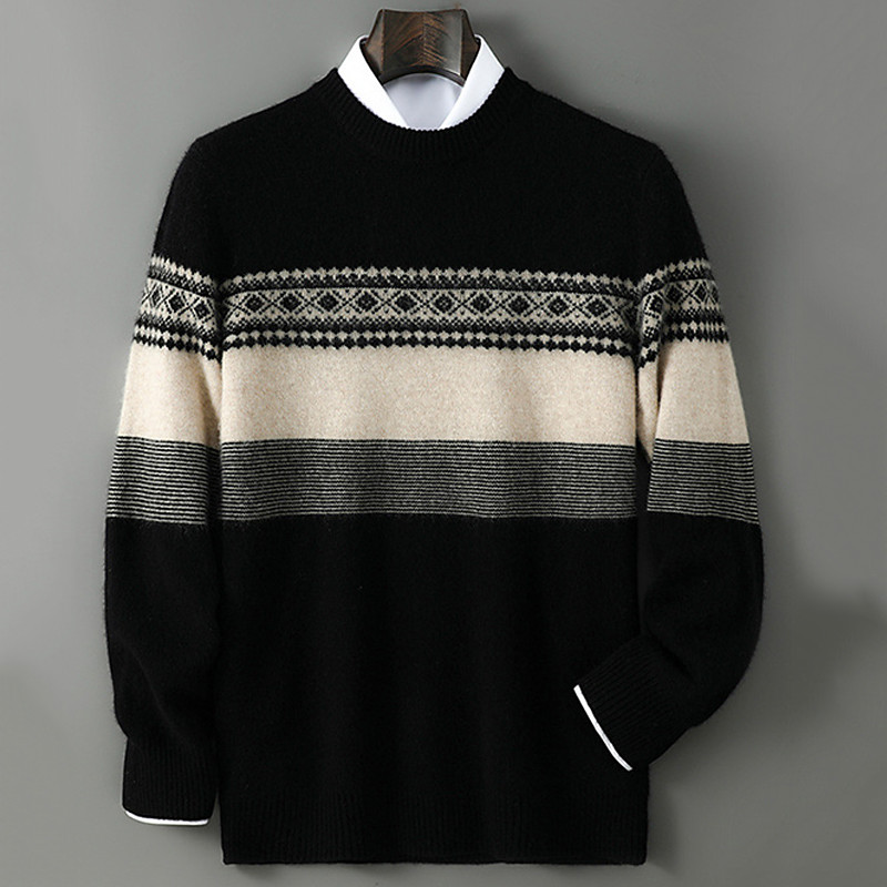 Men's Sweater Wool Sweater Pullover Sweater Jumper Knit Sweater Ribbed Knit Regular Tops Knitted Color Block Crew Neck Vintage Fashion Casual Daily Wear Clothing Apparel Fall Winter Black Beige S M L