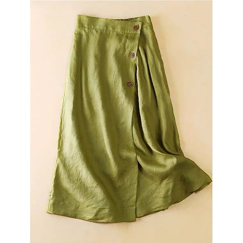 Per donna Gonna Linea A Moda Casual Midi Vita Alta Gonne Semplice Arricciato Elasticizzato Quotidiano Streetwear Nero Bianco Verde Cachi Estate Lino