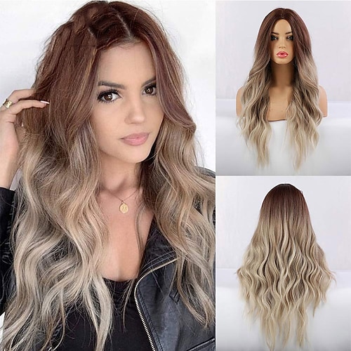 parrucca ondulata lunga parrucca bionda ombre parte centrale capelli ricci ondulati per le donne parrucca bionda lunga da 24 pollici capelli dall'aspetto naturale resistenti al calore per le ragazze