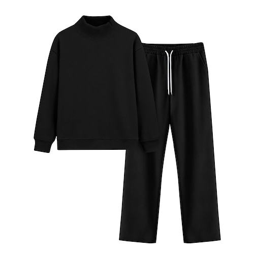 Per donna Set di Pantaloni Bolero Top Manica Lunga Dolcevita Semplice Arricciato Coulisse Moda Streetwear Casuale Quotidiano All'aperto Nero Bianco Verde chiaro Primavera Vestibilità regolare