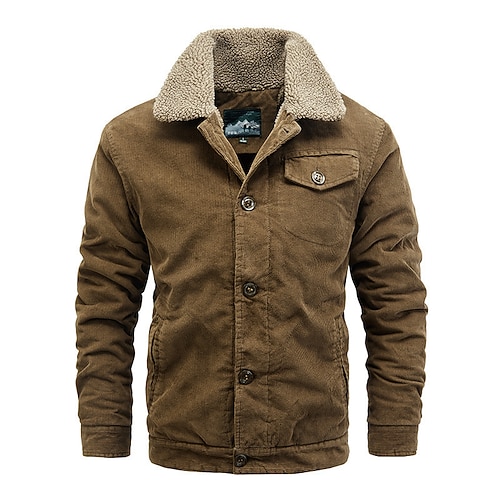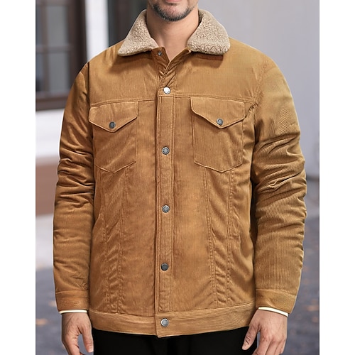 Per uomo Giacca Invernale Giacca in Velluto a Coste Giacca in Pile Giacca Casual Vacanza Quotidiano Calore Termico Tasca Pile Inverno Semplice Moda Streetwear Bavero Regolare Cachi Verde militare