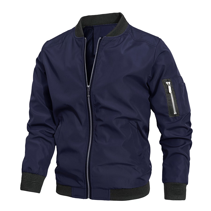 Men's Bomber Jacket Transition Jacket Going out Pocket All Seasons Plain Classic Stand Collar Regular Black Navy Blue Gray Jacket