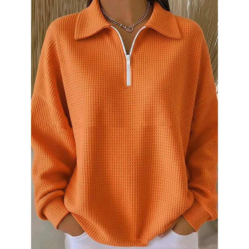 Women's Pullover Sweatshirt Plain Casual Long Sleeve Half Zip Regular Tops Dailywear Casual White Red Orange Fall Winter