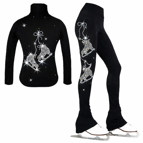giacca da pattinaggio artistico con pantaloni, abbigliamento da pattinaggio sul ghiaccio da donna e da ragazza, nero, elastico, abbigliamento da pattinaggio per competizione, termico, caldo, con
