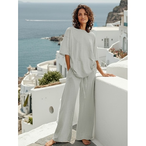 Per donna Abbigliamento da Casa Completi Essenziale Colore Puro Tasca Elastico in vita Maglietta Pantalone Quotidiano Streetwear Manica Lunga Girocollo Blu Nero Bianco Blu marino Marrone chiaro